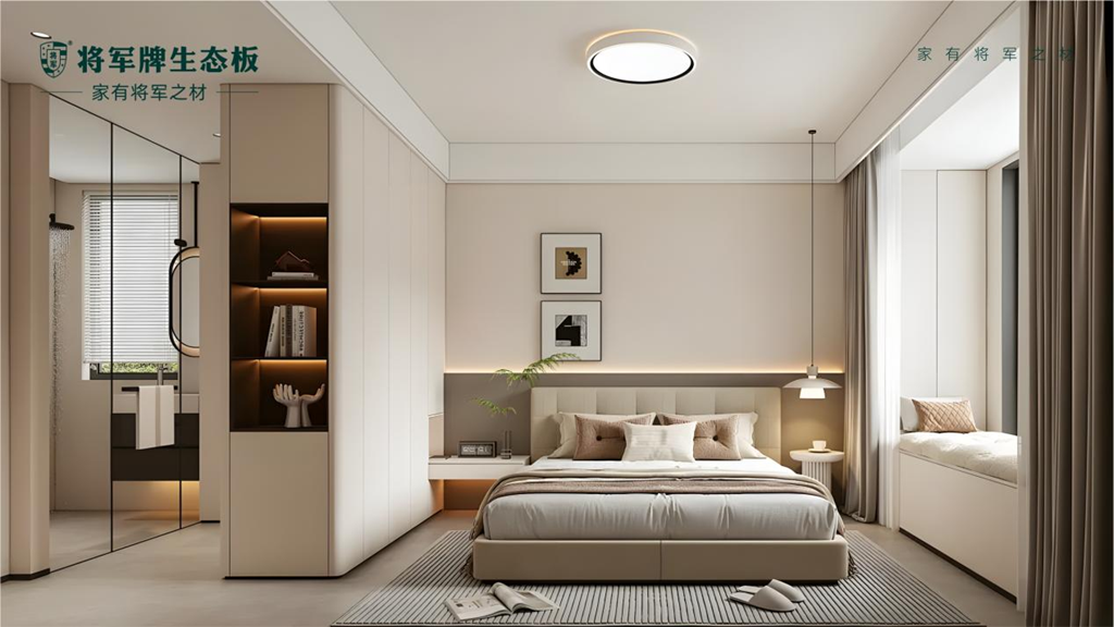 將軍牌生態(tài)板深諳色彩美學,以精準的色系把控貫穿主體結構與細節(jié)裝飾,讓不同空間的過渡自然流暢。這種細膩的色彩把控,既營造出和諧統(tǒng)一的空間氛圍,又在統(tǒng)一中勾勒出豐富層次感——使現(xiàn)代簡約風格更顯干凈利落,令經(jīng)典輕奢風格愈顯高貴典雅。